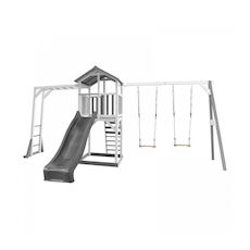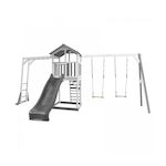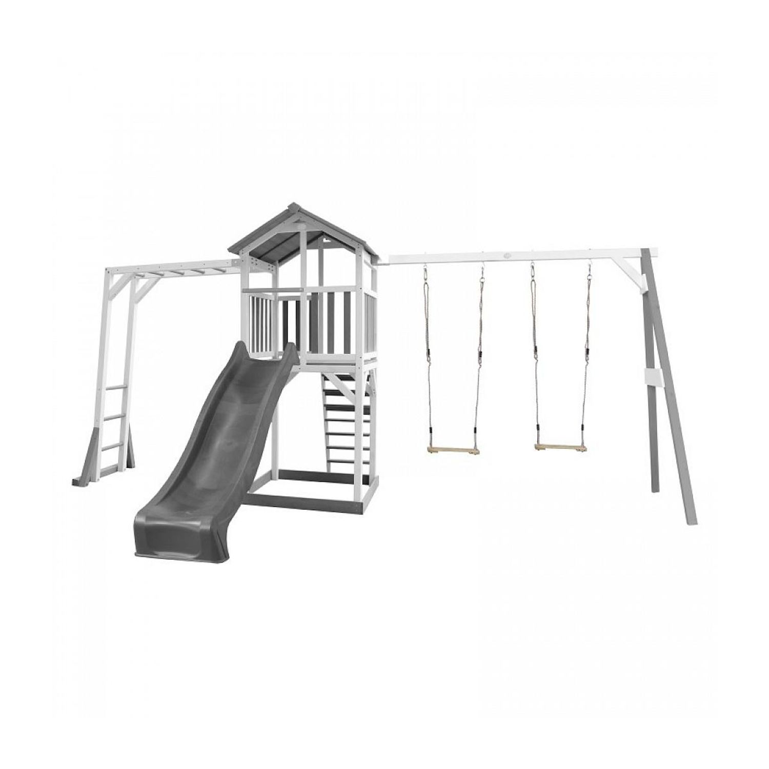 AXI Structure de jeu Beach Tower Blanc Gris avec cadre d'escalade et 2 balancoires et toboggan Gris