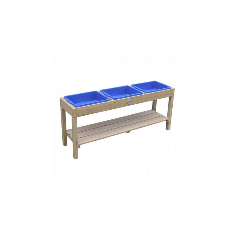 La table en bois avec 3 bacs bleus en brun naturel par AXI peut être utilisé de plusieurs façons différentes. Les enfants peuvent l'utiliser comme un sable amusant et la nappe phréatique. Il suffit de remplir les bacs en plastique avec de l'eau, du sable ou de l'argile et laissez le plaisir commencer! Crafting, déconner et pétrir: il est possible avec ce tableau! La table est haute de 50 cm et donc idéal pour jouer debout. Au bas de la table a une étagère de stockage. Cela peut être utilisé pour ranger des articles en vrac et des jouets qui seront toujours à portée de votre enfant de jouer!. Pratique et sûr. Lorsque vos enfants ont fini de jouer, les plateaux amovibles peuvent être facilement nettoyés. Le bois de la table est toujours traitée. Soyez créatif et choisissez votre thème préféré ou les couleurs pour créer votre propre table d'activité personnalisée. Ou tout simplement utiliser la tache et le garder naturel. Une fois que la table a été traitée, vous pouvez l'utiliser à l'intérieur comme à l'extérieur. Ce tableau d'activité polyvalente convient aux enfants de 3 ans et plus. FSC durable 100% de bois de Hemlock. La table est faite de FSC 100% bois de pruche et est également issu de forêts gérées de manière durable et est donc un choix respectueux de l'environnement. Ce type de bois ne se fragmentent pas et est naturellement résistant aux influences climatiques telles que la pluie et donc résistant à la pourriture du bois. Le tableau est encore traitée. Soyez créatif et choisissez ensemble votre thème ou couleurs préférées pour créer votre propre chevalet personnalisé. Ou tout simplement utiliser la tache et le garder naturel. sécurité. Les tables d'activité de AXI ont une marque CE et sont testés et fabriqués selon la norme EN 71 normes de sécurité pour assurer jouer en toute sécurité.