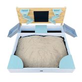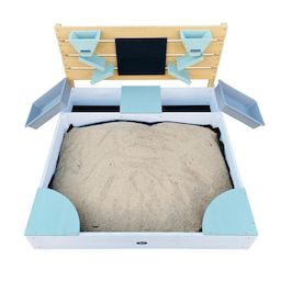Contient : Bac à sable Cato ardoise vert/blanc/marron Caractéristiques Grand bac à sable en bois d'une capacité d'environ 110 kg de sable. Mur de jeu avec 2 entonnoirs en bois permettant à votre enfant de verser le sable. Tableau noir sur le mur de jeu pour stimuler la créativité des enfants (crayons non inclus). Bâche et tapis de sol inclus pour protéger le sable et le garder propre. Deux bacs amovibles en plastique gris pour le sable ou l'eau. Capacité maximale : 4 litres par bac. Banc avec étagère amovible offrant un espace de rangement supplémentaire. Deux étagères d'angle pouvant servir de sièges. Poids maximal : 50 kg. Bois de pruche certifié FSC 100 %, issu de forêts gérées durablement. La pruche ne se fendille pas et est naturellement résistante aux intempéries, notamment à la pluie, et donc imputrescible. Montage facile grâce à des pièces partiellement pré-assemblées. Les bacs à sable AXI sont conformes aux normes CE et testés et fabriqués selon la norme de sécurité EN 71, garantissant ainsi des jeux en toute sécurité. Traitement à la teinture à base d'eau, sans produits chimiques. Convient aux enfants de 3 ans et plus. Garantie 10 ans ! Dimensions Dimensions extérieures du bac à sable (L x l x H) : 105 x 100 x 58,5 cm Dimensions intérieures du bac à sable (L x l x H) : 97 x 74 x 15 cm Dimensions extérieures du bac (L x l x H) : 35 x 25 x 7 cm