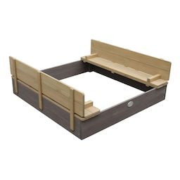 Contient : Bac à sable Ella XL gris/marron édition limitée Bac à sable polyvalent avec couvercle en bois se repliant facilement pour former deux bancs. Capacité : environ 375 kg de sable. Poids maximal : 100 kg par banc. Fabriqué en bois de pruche 100 % certifié FSC, issu de forêts gérées durablemen