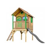 Contient : Maisonnette Laura marron/vert toboggan gris DIMENSIONS (L x l x H) : 191 x 318 x 272 cm. Laura a une hauteur de plate-forme de 58 cm et une hauteur totale de 272 cm. La maison de jeu mesure 191 cm de long et 318 cm de large. Avec une dimension intérieure de 115 x 113 cm et une hauteur de