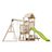 Contient : Tour Mette 2 balançoires + table toboggan vert citron Dimensions extérieures (L x l x H) : 383 x 367 x 265 cm. Dimensions intérieures (L x l x H) : 85 x 89 x 92 - 140 cm. Siège de la balançoire (L x l x H) : 44 x 17,5 x 1,4 cm. Hauteur de la plateforme : 119 cm. Bac à sable : Dimensions e