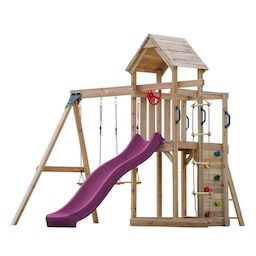 Contient : Tour Moos 2 balançoires + échelle toboggan violet Dimensions. extérieures (L x l x H) : 374 x 342 x 267 cm. Dimensions intérieures (L x l x H) : 124 x 73 x 95-143 cm. Siège de la balançoire (L x l x H) : 44 x 17,5 x 1,4 cm. Hauteur de la plateforme : 119 cm. Bac à sable :. Dimensions extérieures (L x l x H) : 120 x 80 x 15 cm. Dimensions intérieures (L x l x H) : 102,8 x 72,8 x 15 cm.