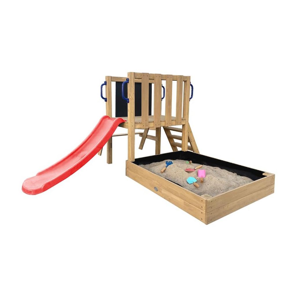 Contient : Tour Leah bac+salle pique-nique toboggan rouge Table de pique-nique deux places. Tableau noir intégré. Accessoires pour bac à sable non inclus. Poids maximal : 100 kg. Notice de montage facile à suivre. Convient aux enfants à partir de 3 ans. Dimensions Dimensions extérieures (L × l × H)
