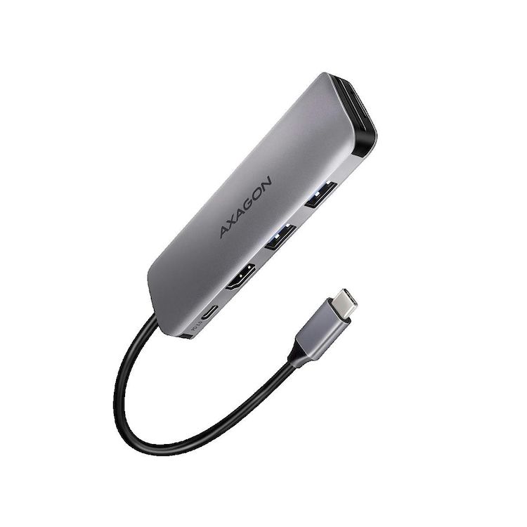 Hub USB-C Axagon HMC-5 Argent avec 2 ports USB-A, 1 port HDMI et 2 ports USB-C