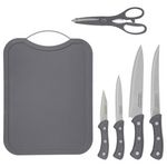 Lot comprenant 1 planche à découper, 4 couteaux & 1 paire de ciseaux
