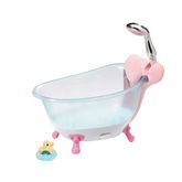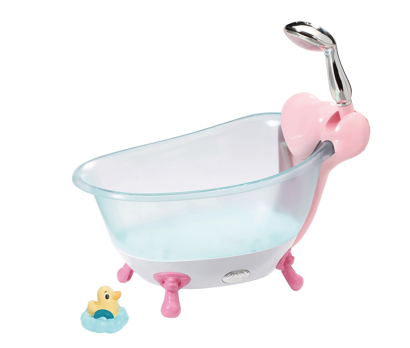 Wahou, cette baignoire magique est idéale pour que ton baby born passe un moment merveilleux dans son bain ! En appuyant sur le bouton, tu pourras activer la douche automatique, les effets lumineux et les nombreux sons ! Ton bébé va pouvoir se détendre comme dans un vrai SPA ! Il pourra également s'amuser avec le joli canard de bain.