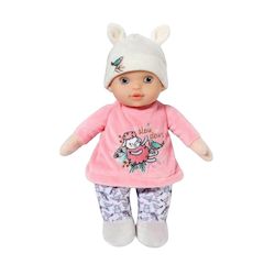 Découvrez la poupée Baby Annabell Sweetie de la marque Baby-born, un poupon de 30 cm idéal dès la naissance. Ce jouet dispose d'un hochet intégré émettant des sons apaisants, stimulant ainsi les sens des tout-petits. Son corps doux en tissu et ses matériaux hypoallergéniques garantissent une sécurité optimale. Lavable en machine à 30 °C, cette poupée respecte les normes CE. Elle est habillée d'un adorable haut rose avec un bonnet à oreilles, offrant une expérience ludique et câline pour les enfants. Parfaite pour développer l'attachement et le jeu d'imitation chez les bébés.