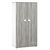 -Portes, dessus et dessous, en panneaux de particules mélaminés décor chêne silex. -Cotés, en panneaux de particules mélaminés décor blanc, chant décor bois. -3 tablettes intérieures en panneaux de particules mélaminés décor blanc. -2 boutons "Nuage «en panneaux de fibres MDF laqués blanc. -4 pieds plastiques blancs. -Charnières invisibles. -1 Décor sérigraphie blanc sur la porte droite. -1 tringle penderie.