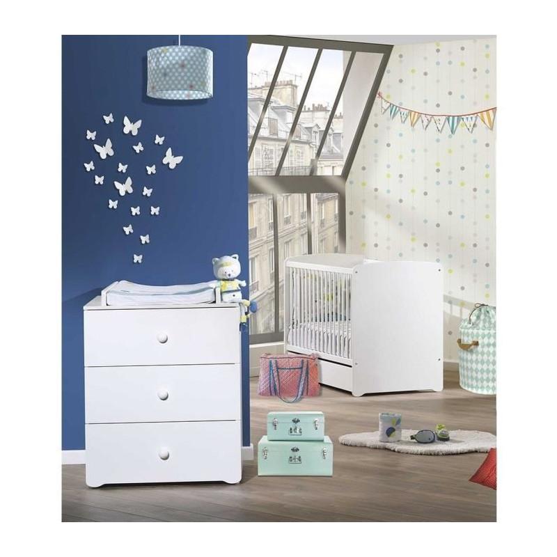 Chambre bébé duo Basic boule: Lit 120x60, commode a langer - Babyprice - Blanc