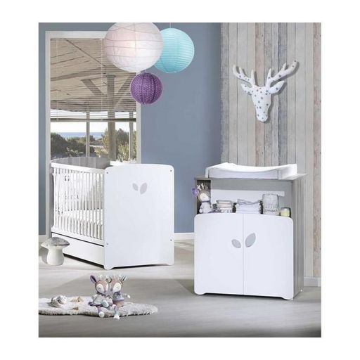 Chambre bébé duo Leaf: lit 120x60, commode a langer - Babyprice - Blanc