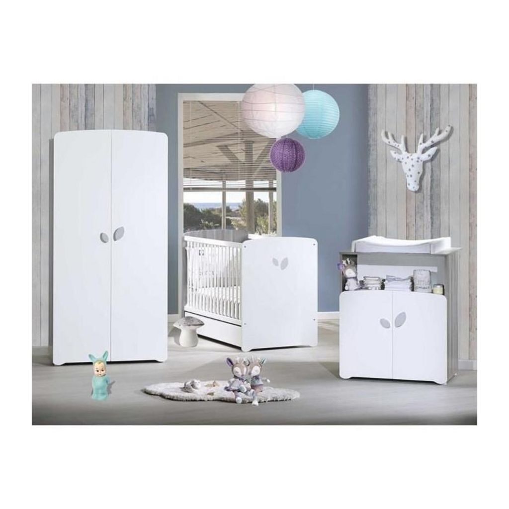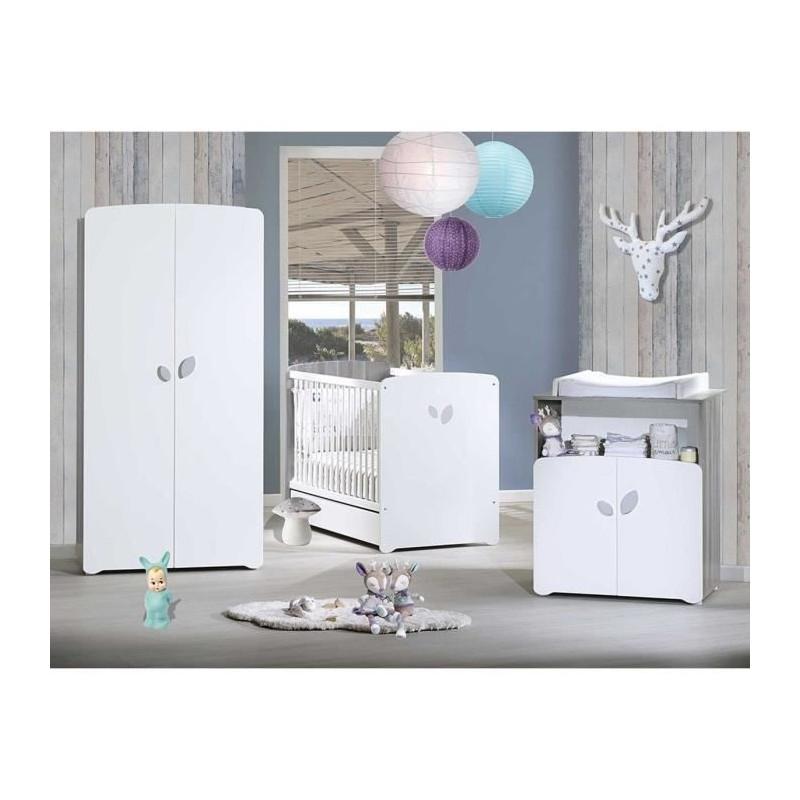 Chambre bébé trio Leaf: lit 120x60, commode a langer et armoire - Babyprice - Blanc