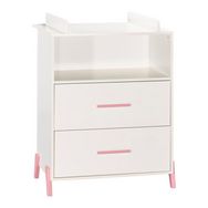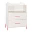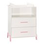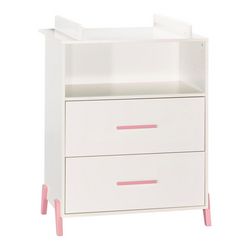 Élément phare d'ameublement pour bébé, cette commode à langer blanche 2 tiroirs et 1 niche de la collection JOY est idéale pour changer en toute sécurité votre petit bout. Disposant de 4 pieds biseautés et de 2 poignées en hêtre laqués rose poudré, elle propose un look coloré et nordique qui saura parfaitement s'adapter à une décoration sobre, ludique et moderne. La commode à langer JOY de style scandinave est une commode qui combine modernité et fonctionnalité. Elle possède 2 grands tiroirs et une grande niche pour vous permettre de ranger l'essentiel des affaires de bébé. Vous pourrez ainsi changer bébé en toute sécurité jusqu'à ses 11 kg en ayant l'essentiel à portée de main. Une commode à langer de qualité et de fabrication française qui accueillera facilement bébé pendant de longs moments. Pour une chambre complète, vous pourrez associer à votre commode, les lits 120x60 ou 140x70 et l'armoire 2 portes de la collection JOY.