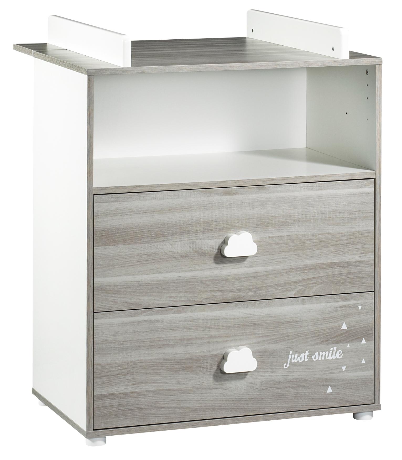 Commode à langer 2 tiroirs + 1 grande niche HAPPY, Chêne Silex