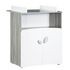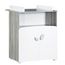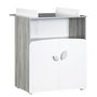 Panneau de fibres de moyenne densité (MDF) laqué blanc / Panneau de particules décor papier chêne silex / Panneau de fibres dures blanc / 2 boutons "feuille" (1 petit + 1 grand) laqués gris fumé.