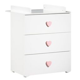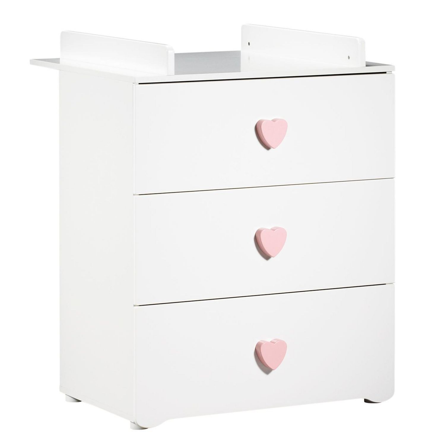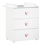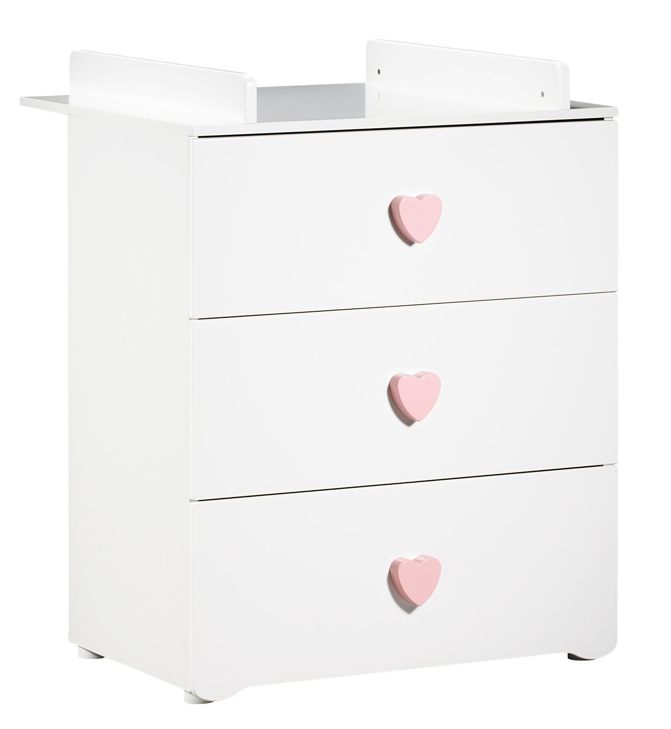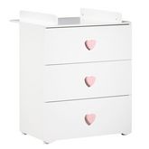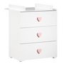 Commode à langer 3 tiroirs NEW BASIC Boutons Cœur Rose
