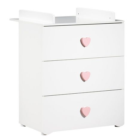 A la recherche d'une belle commode à langer pour vous occuper de votre bébé et pour ranger ses affaires ? Arrêtez-vous quelques instants sur cette commode à langer LOVE. Composée de 3 tiroirs + un dispositif à langer amovible, elle à tous les atouts pour vous séduire ! Faite en Panneau de particules mélaminé blanc / Panneau de fibres de moyenne densité (MDF) laqué blanc / Panneau de fibres dures blanc / Boutons "cœur" rose tendre en MDF. Le tout certifié PEFC, signifiant qu'ils proviennent de forêts gérées de façon durable. Cette commode à langer LOVE fait partie d'une collection du même nom qui comprend le lit bébé combiné évolutif, le lit simple et l'armoire. Si vous n'êtes toujours pas convaincu par ce produit, d'autres collections vous attendent sur Auchan.fr