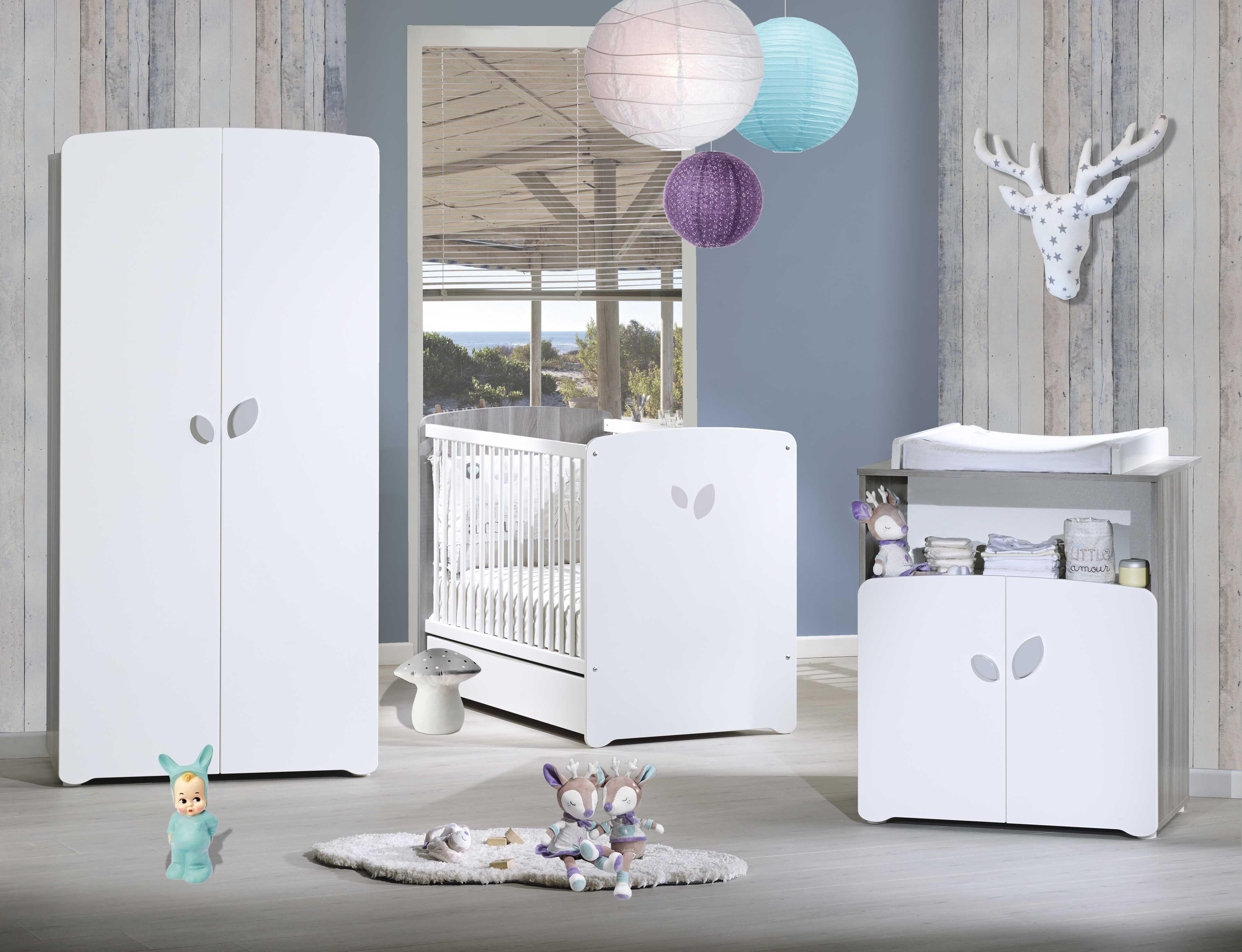 Un lit avec 3 niveaux de couchage (merci pour le dos !) grâce à son sommier réglable sur 3 positions. La commode CALINOU dispose d'un dispositif à langer amovible pour vous occupez de votre bébé et peut donc se retirer quand vous n'en n'aurez plus besoin. Avec ses 2 tiroirs et sa grande niche vous disposerez d'un espace de rangement suffisant pour ranger les affaires de votre bébé. L'armoire 2 portes agrémentée de boutons en étoile sera parfaite pour optimiser le rangement dans la chambre de bébé !