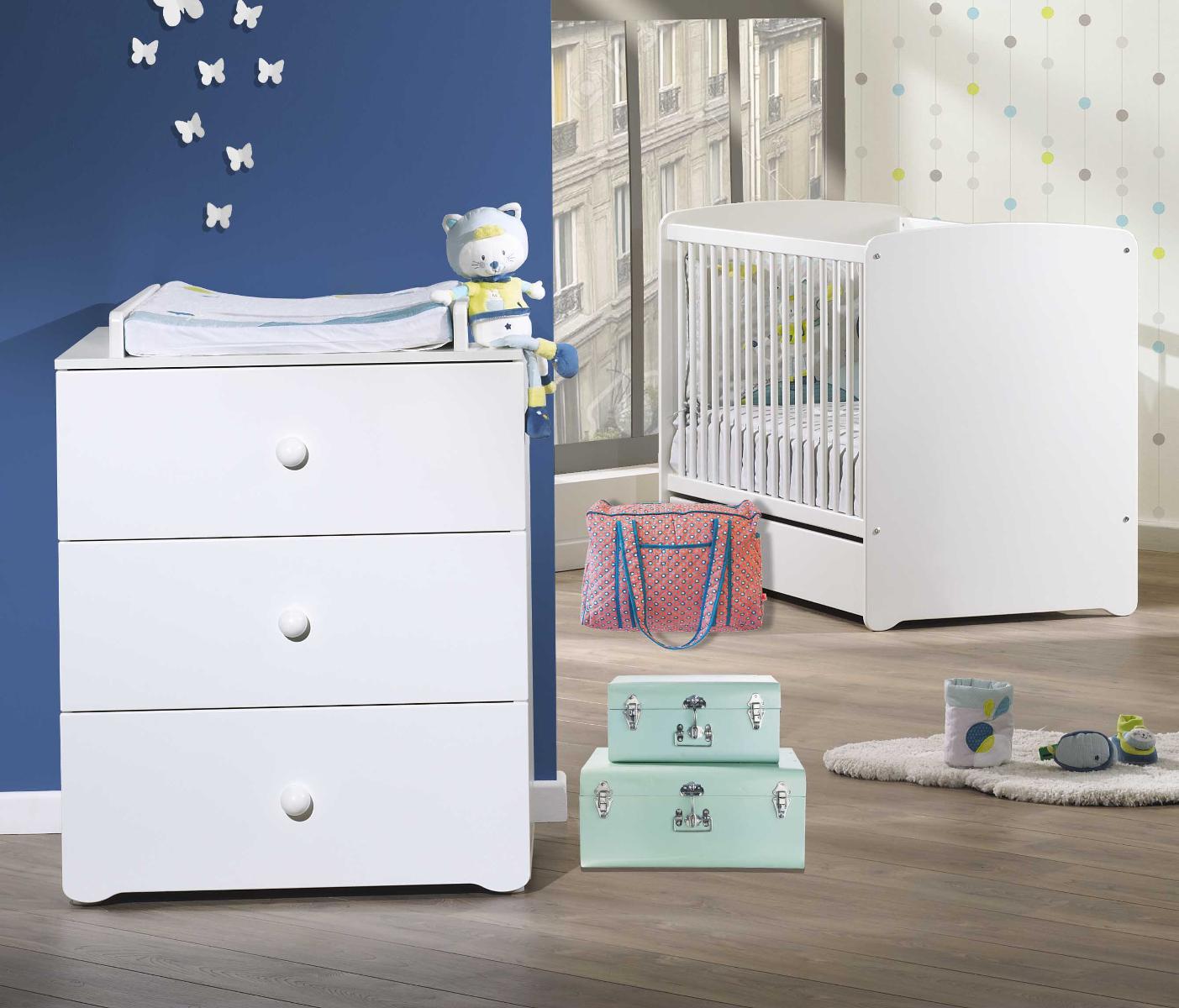 De fabrication française, le lit NEW BASIC est garantie sans solvant et est conforme aux normes en vigueur. Confortable, le sommier est réglable sur 3 positions. Il offre donc toutes les garanties en terme de sécurité pour votre bébé. La commode NEW BASIC dispose d'un dispositif à langer amovible pour vous occupez de votre bébé et peut donc se retirer quand vous n'en n'aurez plus besoin. Avec ses 3 tiroirs vous disposerez d'un espace de rangement suffisant pour ranger les affaires de votre bébé !