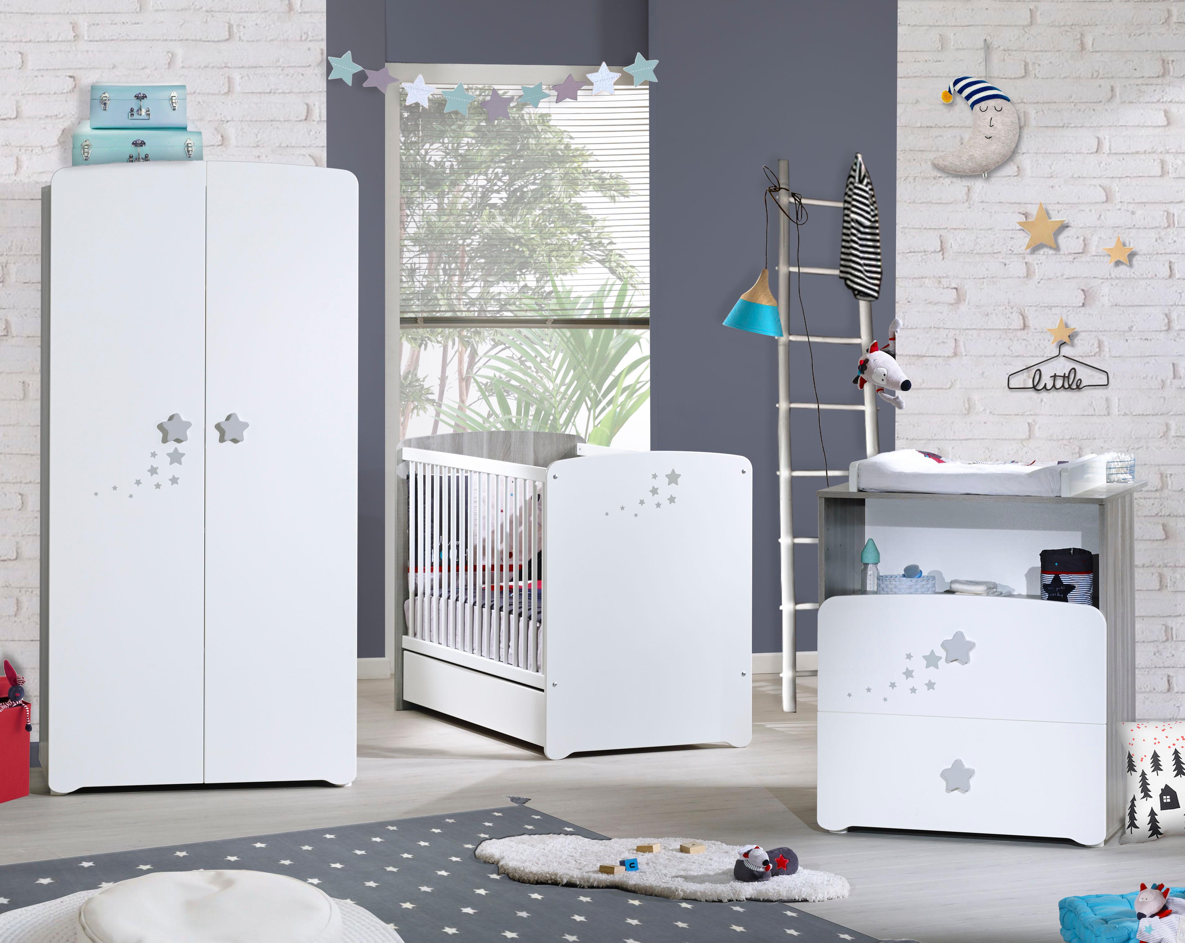 Cet ensemble promo PILOU comprend le lit simple 60 x120 cm et son tiroir de rangement , la commode à langer 2 tiroirs et l'armoire. C'est donc un ensemble complet, de qualité et à un prix attractif pour meuble la chambre de votre bébé. De fabrication française et garanti sans solvants, il offre toutes les garanties en terme de sécurité pour votre bébé avec les certifications aux normes NR EN 716 n°1 & 2 (2008) + A1 février 2022 pour le lit et NF EN 12221 n°1 & 2 (2008) + A1 Octobre 2013 pour la commode. Cet ensemble est mixte il peut donc convenir aussi bien pour un garçon que pour une fille. Si vous n'êtes pas encore convaincu par cette chambre bébé, d'autres collections vous attendent sur Auchan.fr
