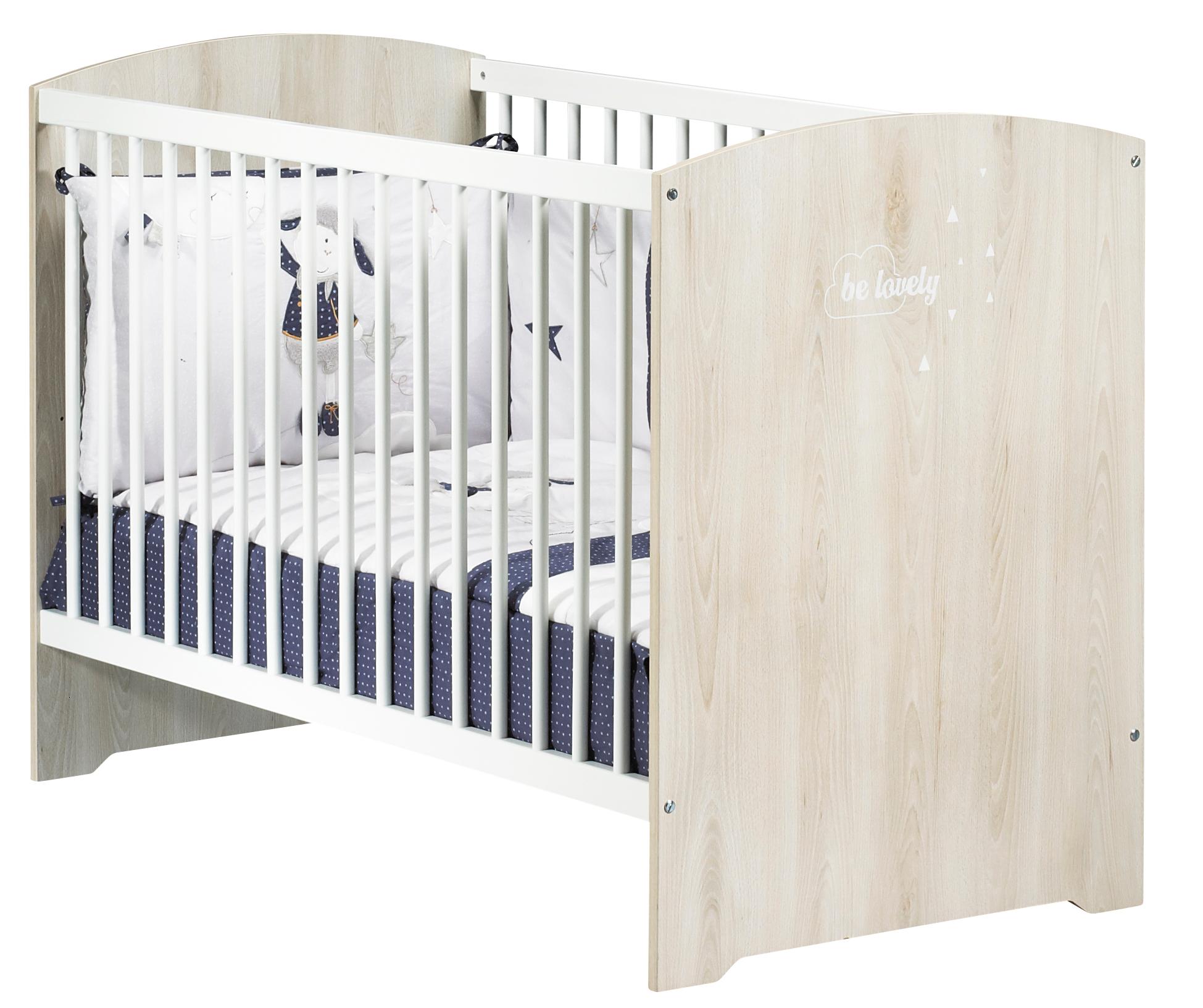 *Une collection mixte aux tons Hêtre cendré et blanc. Décor au petit nuage "Be Lovely" par sérigraphie, pour que bébé s'endorme en toute sérénité !