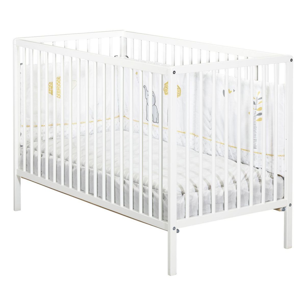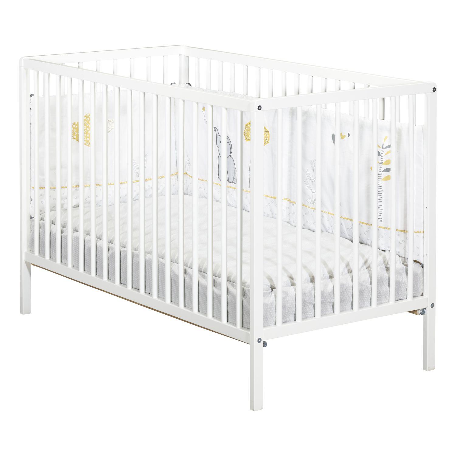 Lit bébé 60x120cm sommier réglable en hauteur, barreaux blanc, collection FIRST
