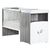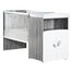 Panneau de fibres de moyenne densité (MDF) laqué blanc / Panneau de particules décor papier chêne silex / Panneau de particules mélaminé blanc / Galeries en hêtre laqué blanc / Sommier en hêtre brut / 4 pieds ronds blancs / 2 boutons "feuille" (1 petit + 1 grand) laqués gris fumé.