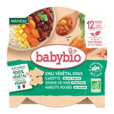 Assiette chili végétal doux carotte grain de mais haricots rouges bio