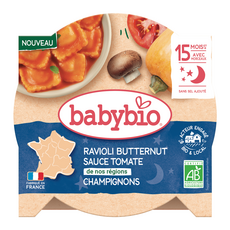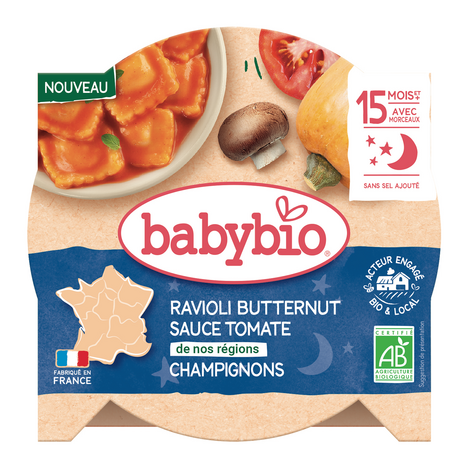 Assiette ravioli butternut sauce tomate champignons bio dès 15 mois