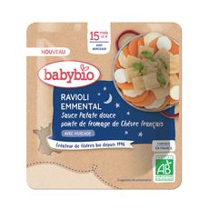 Assiette ravioli emmental sauce patate douce fromage de chèvre bio dès 15 mois