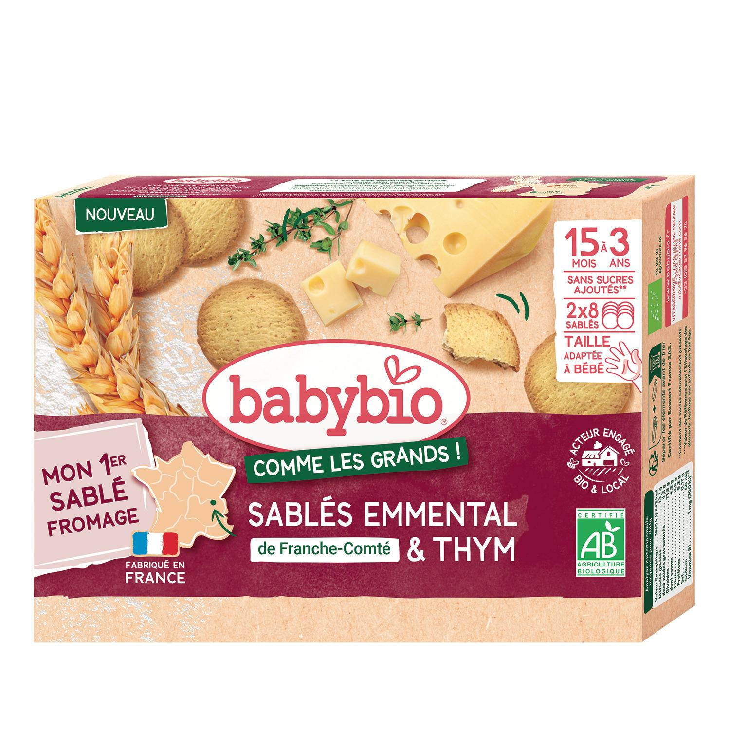 Sablés à l'emmental et au thym bio adaptés aux enfants en bas-âge - 16 sablés (2 sachets de 8)