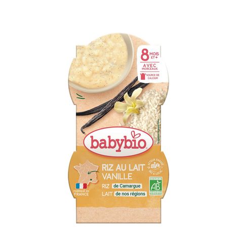 Riz au lait à la vanille bio avec morceaux Aliment pour bébés