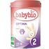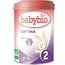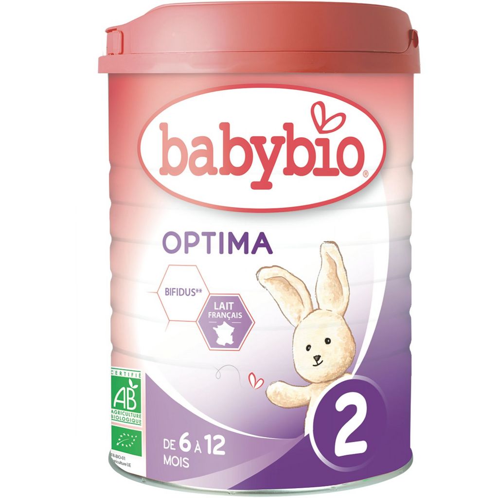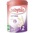 lait de suite biologique en poudre pour nourrissons Babybio Optima 2 est un lait de suite bio, au Bifidus*, élaboré en France avec du lait de vache d’origine française., *La formule Babybio Optima 2 est légèrement acidifiée par du Bifidus