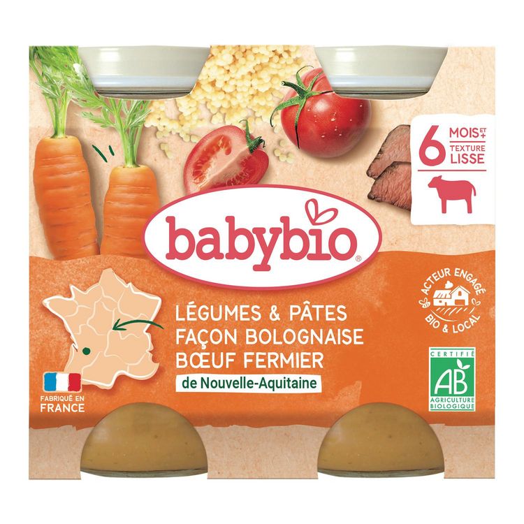 Petit pot bio dès 6 mois légmes et pâtes bolognaise