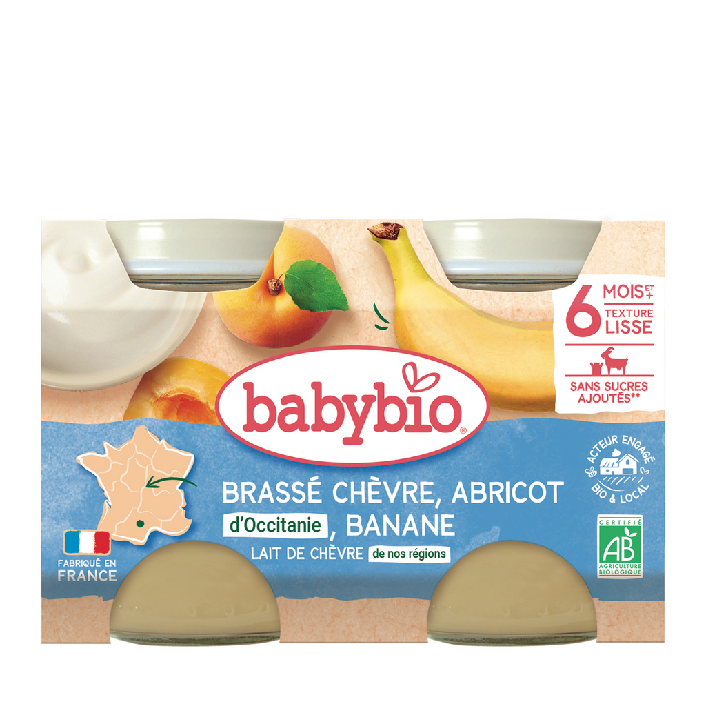 Petit pot brassé chèvre abricot d'Occitanie et banane bio dès 6 mois