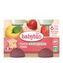 Purée de pommes, fraises et myrtilles bio. Aliment pour bébés