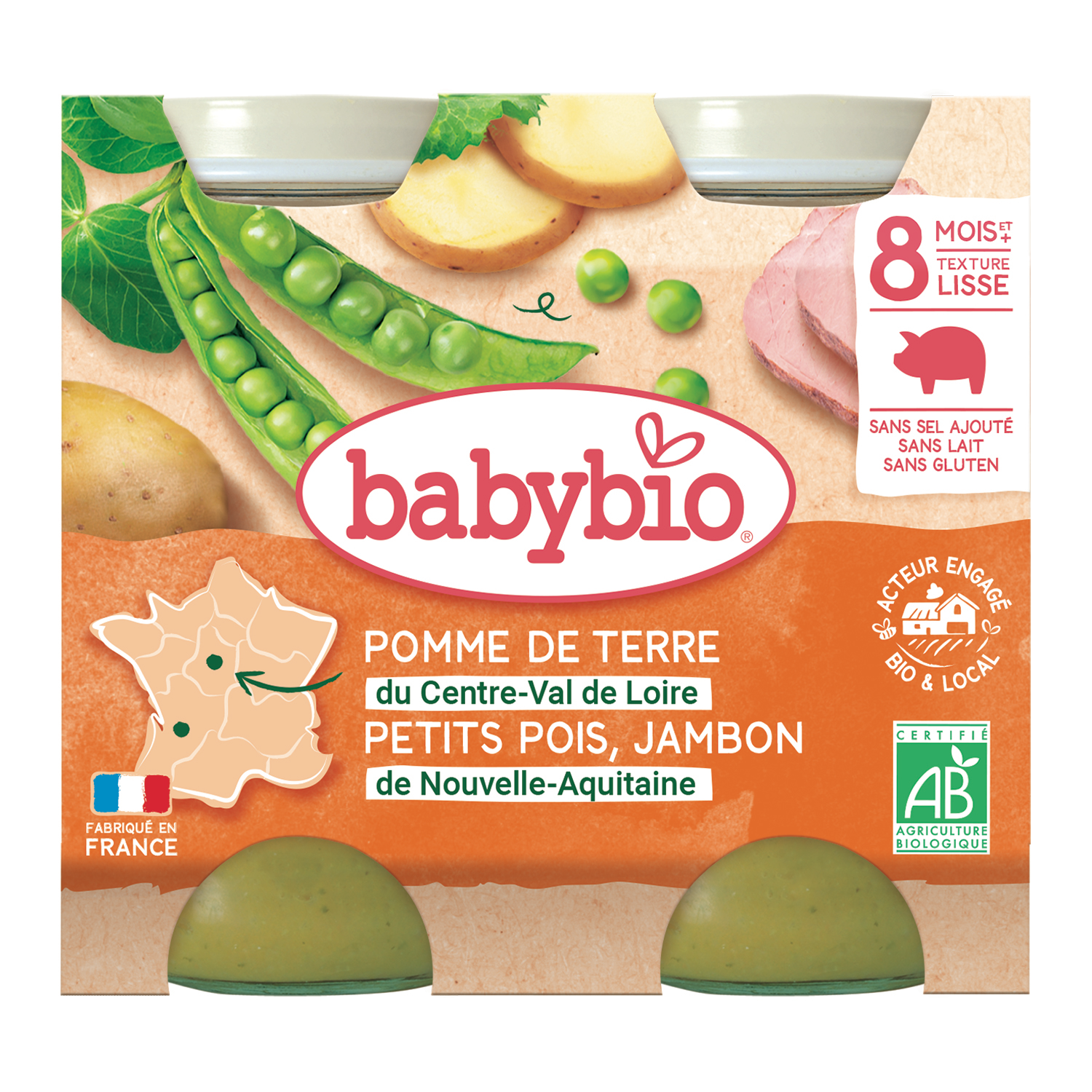 Petit pot pomme de terre petits pois jambon bio dès 8 mois