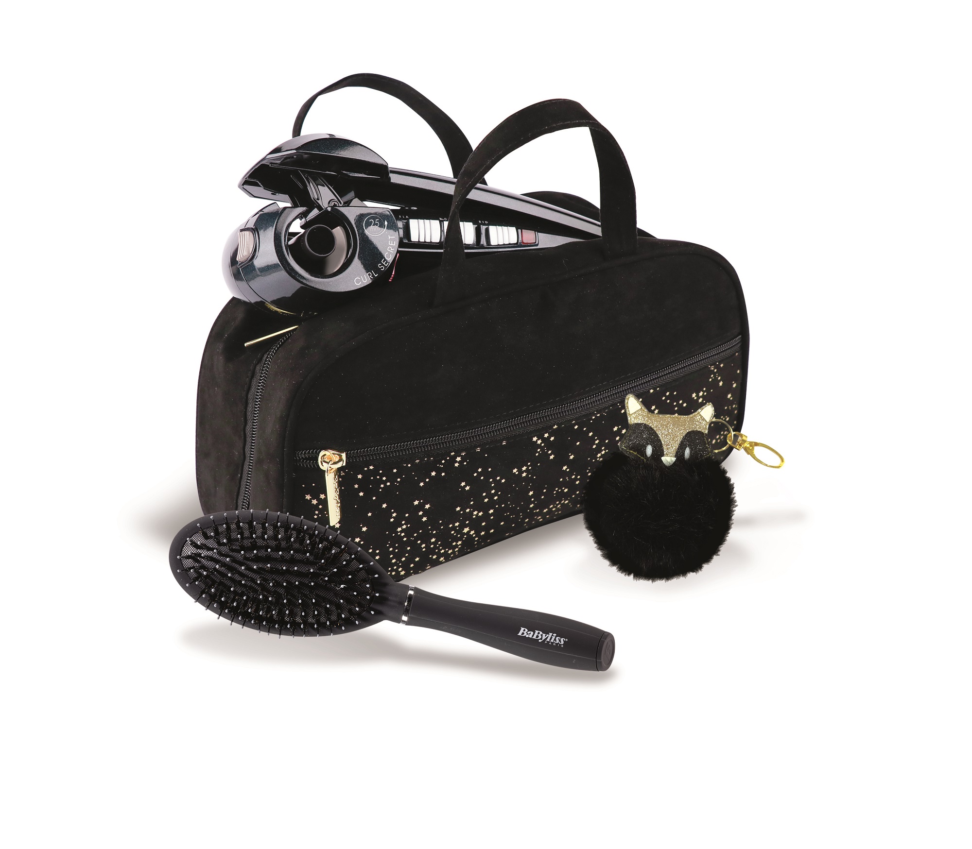 Fonction ionique, 3 positions de température, 4 positions de durée, Indicateur sonore, Arrêt automatique, 2 têtes pour 2 diamètres de boucles, Sélection du sens de rotation, Trousse de rangement + Brosse démêlage + porte-clés Pompon inclus