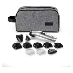 Autonomie 60 min, Temps de charge 8 h, Tondeuse nez et oreilles, 6 guides de coupe barbe et 2 guides de coupe corps