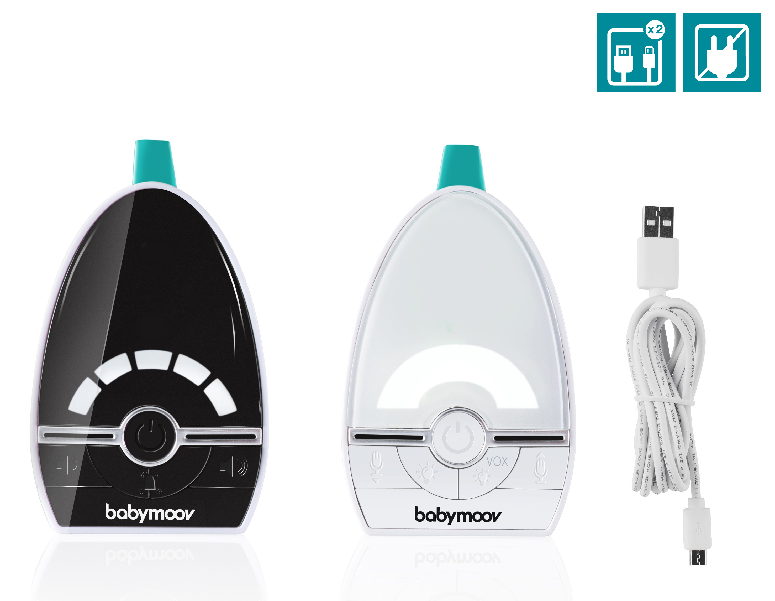 - Unité Bébé : fonctionne avec un câble micro-USB (fourni) ou piles (non fournies)