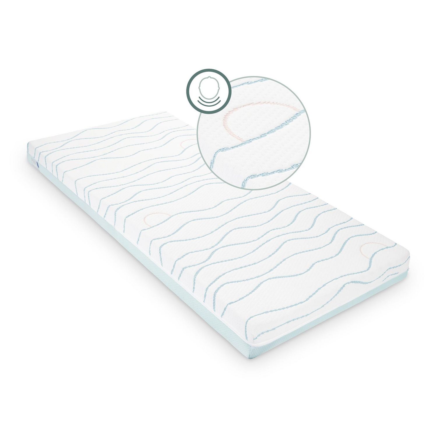 Un bébé passe 18h par jour à dormir, c'est pourquoi, chez Babymoov, on considère le matelas comme un vrai lieu de vie !Notre matelas Cosy'Lite est composé d'une mousse à bulles de 10cm d'épaisseur. Ces bulles permettent de réduire la pression sur la tête de bébé pour prévenir la plagiocéphalie (tête
