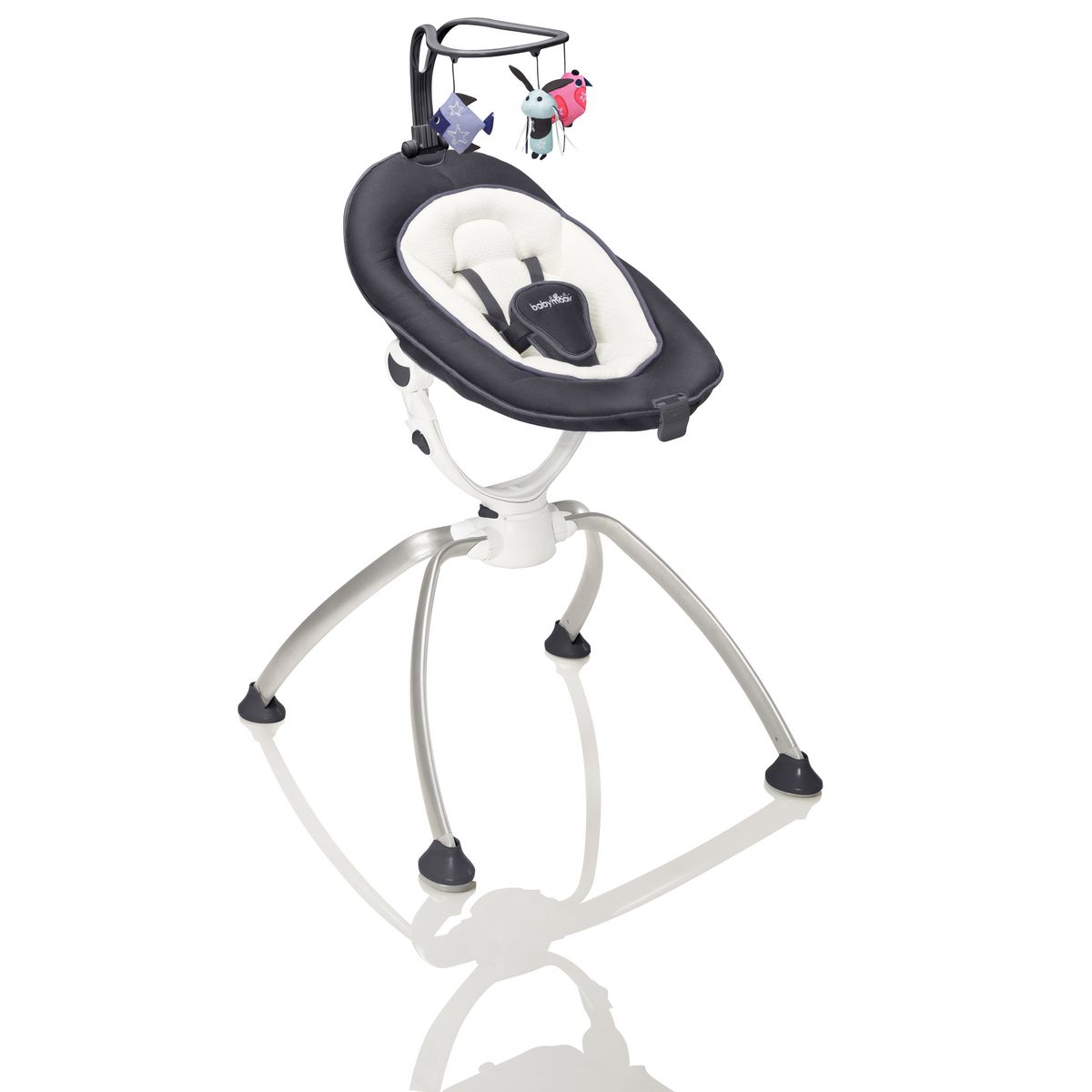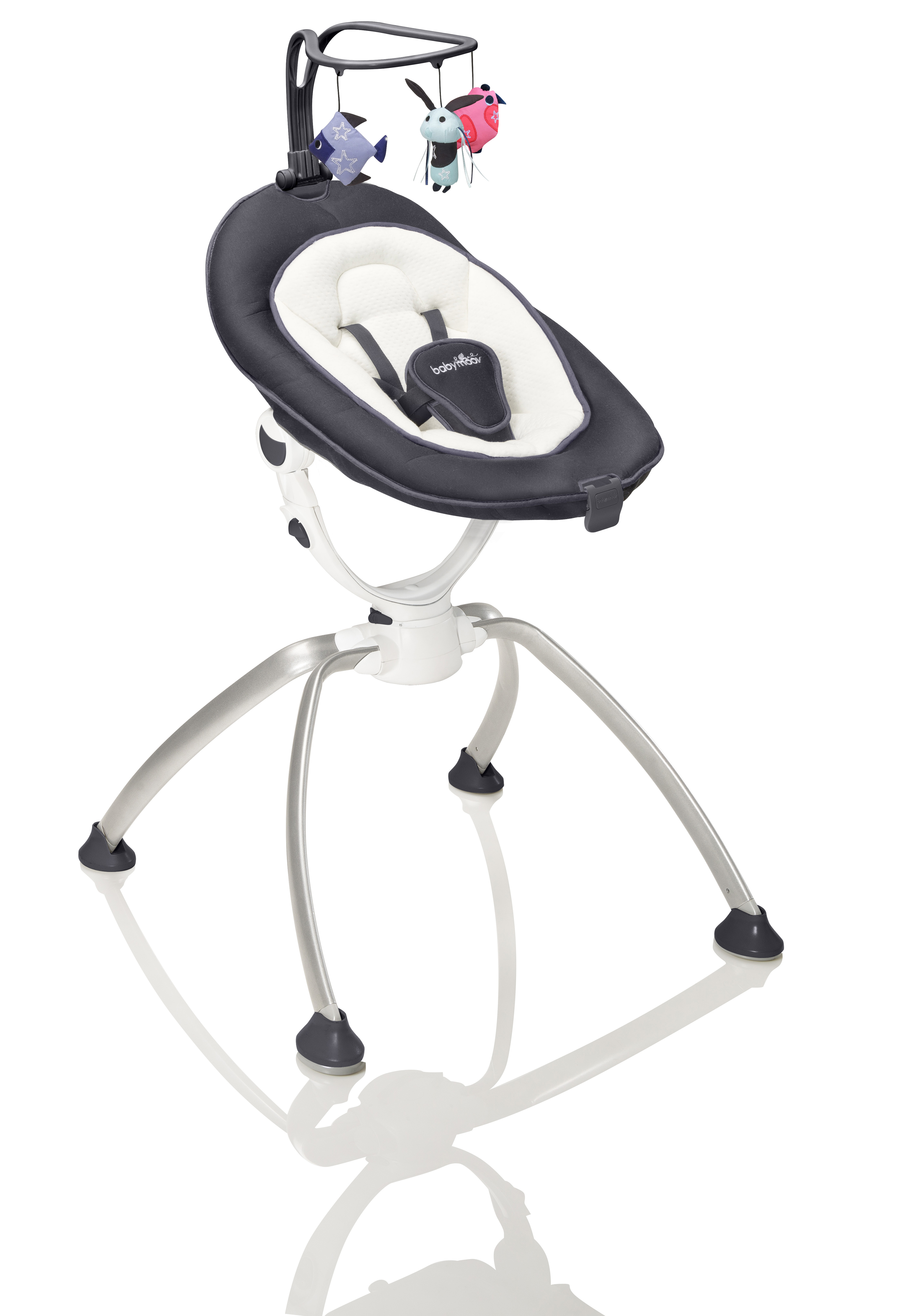 Le transat balancelle bébé Swoon Up de la marque Babymoov est idéal pour le confort de votre bout de chou ! En plus d'être Design et ergonomique, le transat balancelle est réglable en hauteur, rotatif à 360° et totalement pliable ! La hauteur est réglable en une seule main en position haute à 75 cm afin de permettre à bébé de participer à la vie de famille et en position relaxation à 55 cm pour rassurer bébé. Afin d'offrir le meilleur confort à bébé, le transat balancelle Swoon Up possède un coussin réducteur nouveau-né en coton. Pour bercer bébé en douceur et selon son humeur, le transat balancelle possède également une fonction "bercement naturel" celle-ci permet à bébé de se détendre en le berçant. Le transat balancelle accompagne bébé dans son éveil grâce à son arche de jeu amovible ajustable sur 3 positions. Enfin, le transat Swoon Up dispose d'un pliage compact qui vous permet de le ranger et de l’emporter partout avec vous !