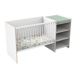Découvrez la polyvalence accessible avec notre lit de bébé combiné de la collection First, une solution économique qui évolue avec votre petit trésor. Ce lit 120x60cm, présenté dans un décor blanc avec un charmant champ bois, apporte une touche de fraîcheur et de praticité à la chambre de votre bébé.