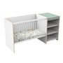Le lit combiné de la collection First est une fusion intelligente de confort et de fonctionnalité. La partie lit de bébé offre un espace douillet pour les siestes et les nuits paisibles, tandis que l'étagère adjacente avec plan à langer simplifie les moments de soin, transformant chaque changement de couche en une expérience pratique.