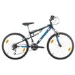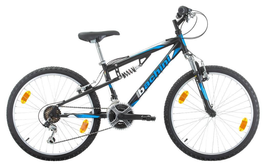 VTT 24'' Tout Suspendu - Cadre acier - Fourche Télescopique, 18 vitesses par poignées tournantes indexées Shimano SL-RS35, Dérailleur arrière Shimano SHIMANO TY21 TOURNEY, Dérailleur avant SHIMANO TOURNEY TY300, Roue libre Cassette SHIMANO MF-TZ500-6 6-SPEED 14-16-18-21-24-28T, Chaine KMC HV-408, Pé