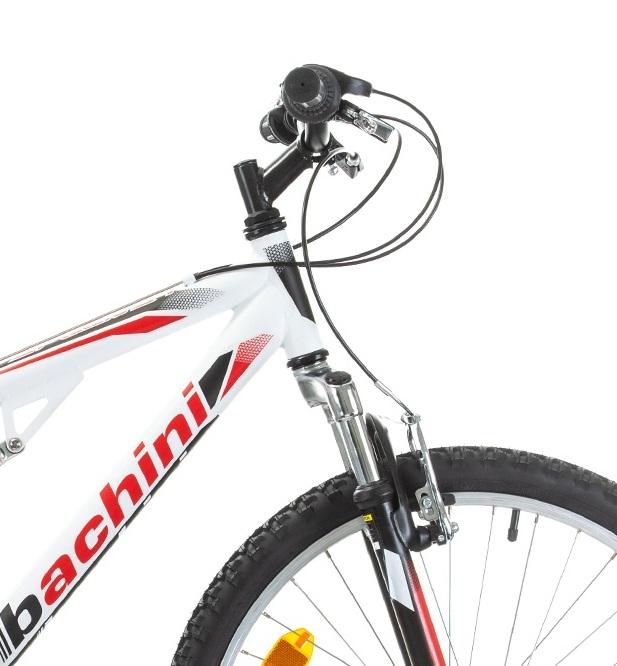 VTT 24'' Tout Suspendu - Cadre acier - Fourche Télescopique, 18 vitesses par poignées tournantes indexées Shimano SL-RS35, Dérailleur arrière Shimano SHIMANO TY21 TOURNEY, Dérailleur avant SHIMANO TOURNEY TY300, Roue libre Cassette SHIMANO MF-TZ500-6 6-SPEED 14-16-18-21-24-28T, Chaine KMC HV-408, Pé