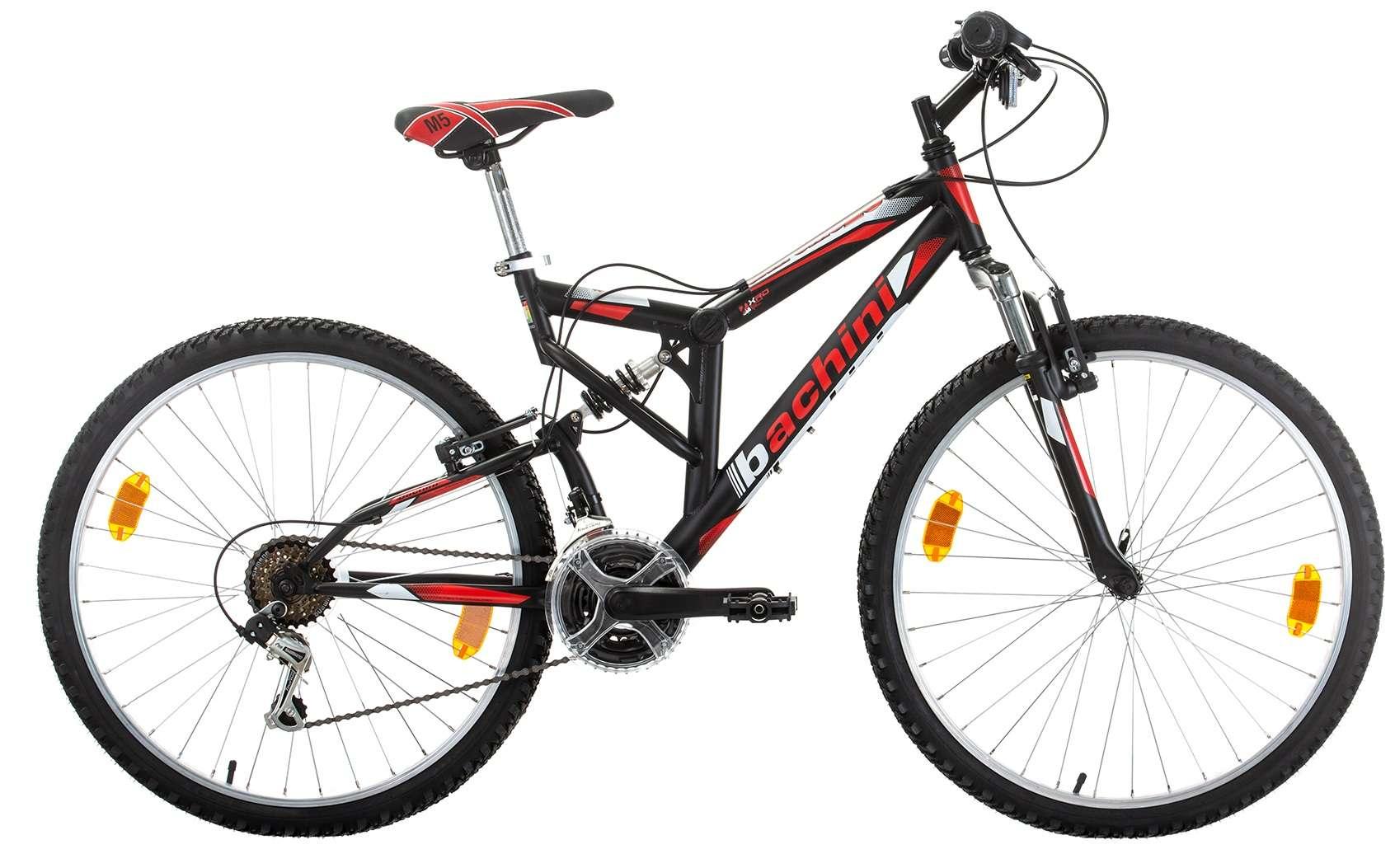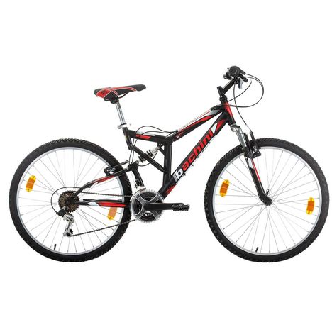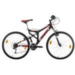 Vélo VTT 26'' Tout Suspendu équipé de 18 Vitesses avec transmission Shimano & Freins V-Brake Alu.
