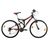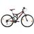 Ce VTT est équipé d'un cadre en acier 26 pouces avec amortisseur central, fourche à suspension, 18 vitesses, freins V-Brake en composite noire, système attache rapide sur la roue avant ainsi que sur la tige de selle, changement de vitesse par poignées tournantes indéxées Shimano SL-RS35, Dérailleur