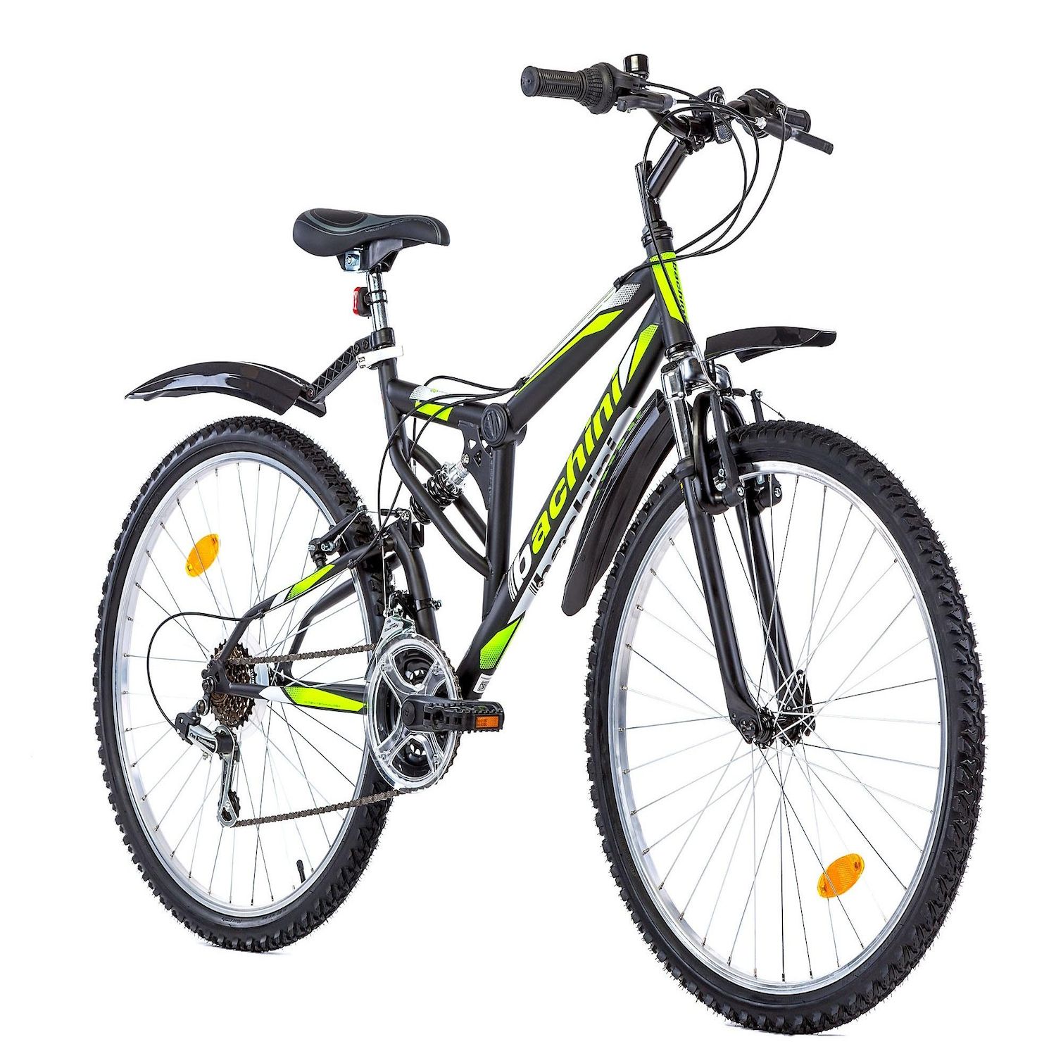 Ce VTT est équipé d'un cadre en acier 26 pouces avec amortisseur central, fourche à suspension, 18 vitesses, freins V-Brake en composite noire, système attache rapide sur la roue avant ainsi que sur la tige de selle, changement de vitesse par poignées tournantes indéxées Shimano SL-RS35, Dérailleur arrière Shimano SHIMANO TY21 TOURNEY, Dérailleur avant SHIMANO TOURNEY TY300, Roue libre Cassette SHIMANO MF-TZ500-6 (6-SPEED 14-16-18-21-24-28T). Le montage à 85% vous permettra d'assembler le vélo en quelques minutes en montant la roue avant sans outils grace à son attache rapide, positionner le guidon et le serrer et tout simplement visser les pédales. L' emballage renforcé assure une protection supplémentaire. La dimension de la roue est de 26 pouces avec des jantes en aluminium et des pneus noirs Kenda 26'' x 1.95.Ce produit est conforme aux exigences de sécurité. Il est fabriqué en Union européenne en conformité avec les règlements de l'UE fixant les exigences de sécurité concernant les bicyclettes.Le constructeur est certifié à la norme ISO 9001:2008