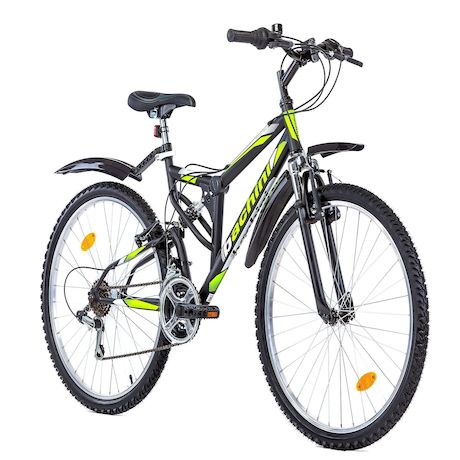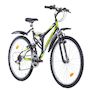 Ce VTT est équipé d'un cadre en acier 26 pouces avec amortisseur central, fourche à suspension, 18 vitesses, freins V-Brake en composite noire, système attache rapide sur la roue avant ainsi que sur la tige de selle, changement de vitesse par poignées tournantes indéxées Shimano SL-RS35, Dérailleur